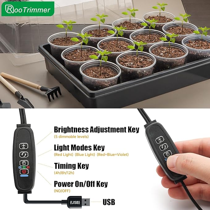 - 【Science-Backed Plant Booster】Nurture stronger seedlings with our 20W LED lights featuring red/blue/violet wavelengths (4000K ideal for growth). Three brightness levels + 3 auto-timer modes (6/9/12hr) let you mimic perfect sun cycles. Flexible gooseneck arms clip securely to trays or stand alone—keep nurturing seedlings even after removing domes! Watch roots flourish under optimal light year-round.