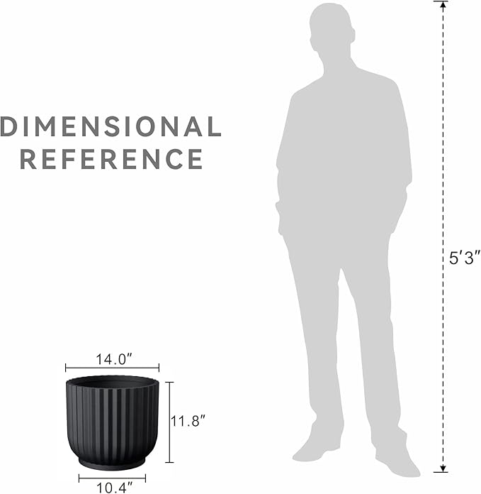- Large & Versatile β Whether displaying a vibrant plant indoors or elegantly placed on your front steps, porch, or patio, this spacious planter effortlessly adapts to any setting. Its distinctive style complements a wide range of dΓ©cor, from modern and minimalist to traditional, adding a touch of sophistication and charm to your space.