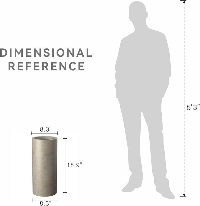 Kante 18.9 Inch Tall Cylindrical Planter, Large Round Plant Pots with Drainage Hole, Made with Concrete, Suitable for Indoor Outdoor Plants, Home Decor, Weathered Concrete