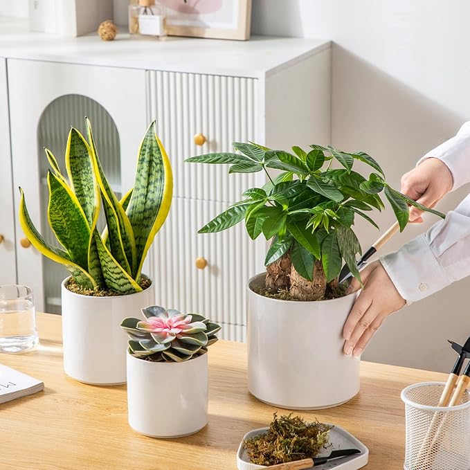 - 【Ceramic Plant Pots】 This set includes three beautifully crafted ceramic flower pots in 4, 5, and 6-inch sizes, perfect for growing a variety of plants and flowers.