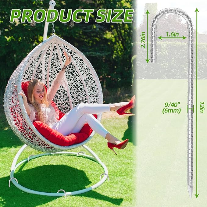 - 【12 Inches Rebar Stakes】The Metal Stake Sold In Bundles Of 8 Pieces.12 Inches Length From Tip To Hook,9/40Inch (6mm) Diameter J Stakes.The Hook Is 2.76" And Spacing Is 1.57",Have A Cutting-Edge Bottom Design Pefect for Feed Garden,Camping Tents,Greenhouse,Canopies,Gazebos And Giant Inflatables Etc To Conquer Any Terrain With Confidence! The Surface of The Ground Stakes Has A Galvanized Coating, Letting You Say Goodbye To The Worry Of Rust And Ensuring Repeated And Long-Term Use!