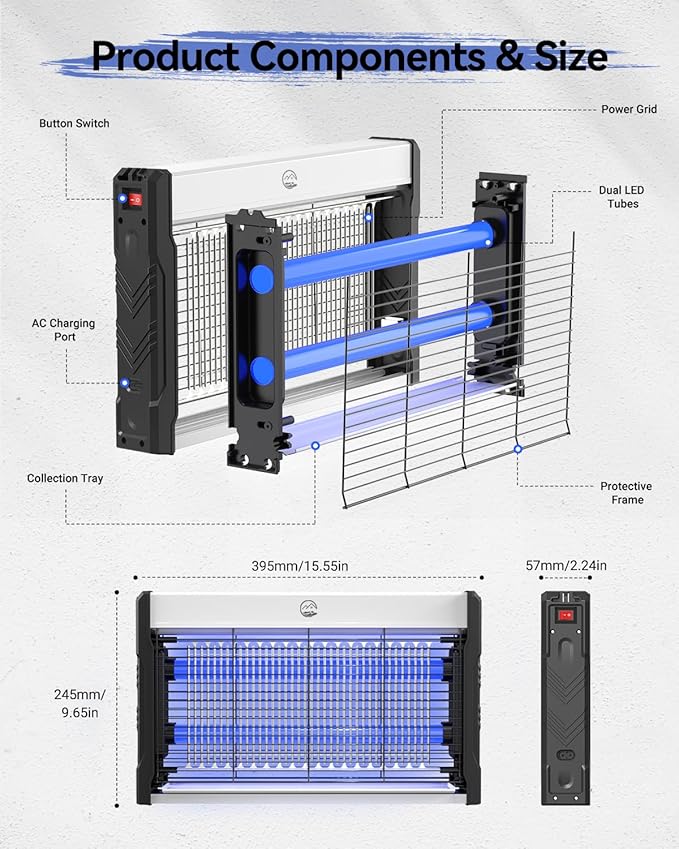 - Long-Lasting & Energy-Efficient - Mosiller Electric Mosquito Zapper with high-efficiency LED lamps, offers longer working time and saves more energy. Don't worry about the trouble of frequently changing bulbs; You can spend every season with peace of mind. (Bulbs are replaceable.)
