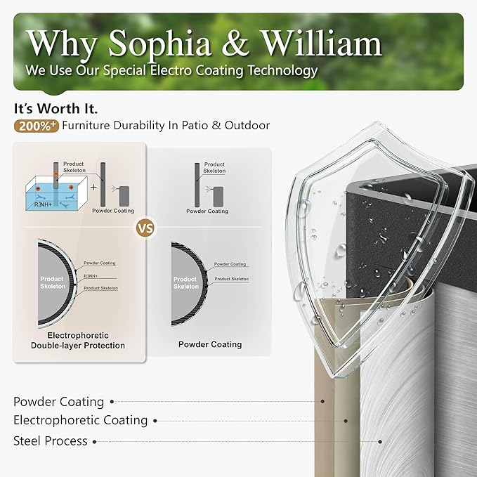 - Sophia & William's Responsive Customer Support: Our dedicated team provides fast, professional assistance—typically responding within 24 hours via Amazon Messages—for assembly guidance, product use, and troubleshooting. Along with expert maintenance tips to keep your Patio Furniture in perfect condition