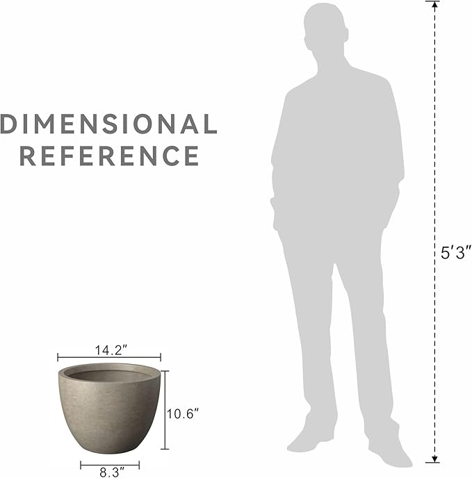 - Generous Growing Space β Thoughtfully crafted to offer plenty of room for healthy and vibrant plant growth, this planter is well-suited for a wide range of plants, from tall trees to resilient succulents and colorful flowers. Its spacious design promotes healthy root development, enhancing the overall growth potential of your plants. The robust construction ensures durability and reliability, making it a source of lasting, stable support for your gardening endeavors.