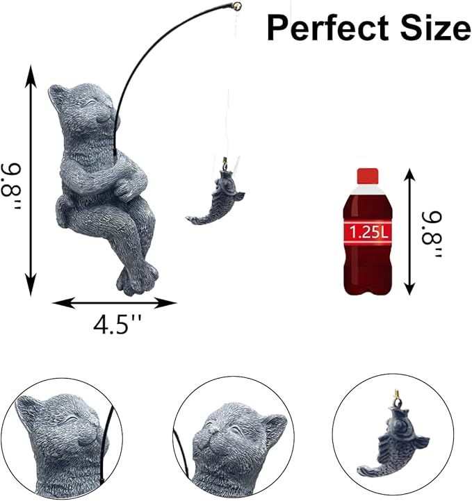 - Weatherproof and Durable: Made from high-quality resin, this weatherproof cat fishing statue is built to withstand wind, rain, sun, and snow, ensuring long-lasting beauty for all seasons in your garden, fish pond, or outdoor spaces.