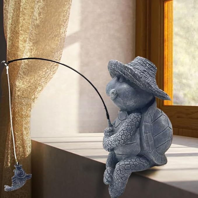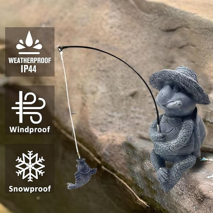 - Weatherproof and Durable: Made from high-quality resin, this weatherproof tortoise fishing statue is built to withstand wind, rain, sun, and snow, ensuring long-lasting beauty for all seasons in your garden, fish pond, or outdoor spaces.