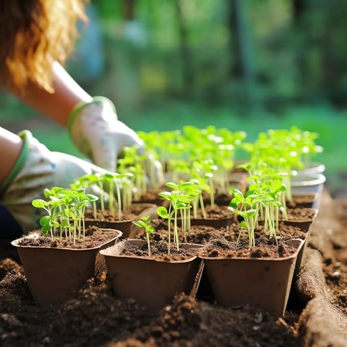- 【Easy Transplantation】The biodegradable seedling starter trays make transplantation stress-free and straightforward. When your seedlings are ready to be transferred to the garden, you can plant the entire pot directly into the soil. This reduces root shock and promotes stronger plant growth, ensuring a higher survival rate for your plants.