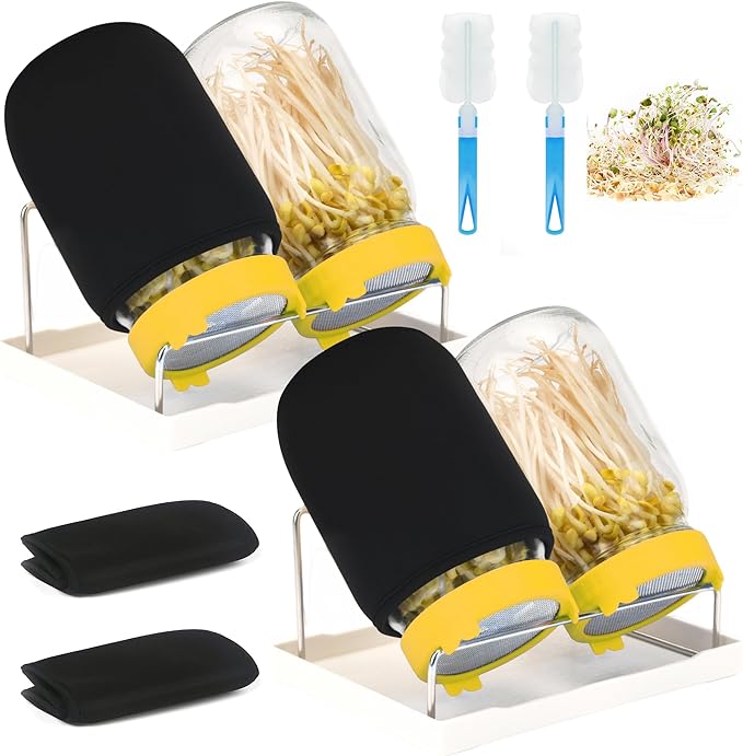 - 【Scientific Design】Bottle mouths are matched with fine mesh lids and sturdy brackets to tilt the jar to the perfect position, allowing your seed sprouts to have good ventilation and drainage-ensuring you get the healthiest sprouts. Shading sets can create the non-light environment you need.