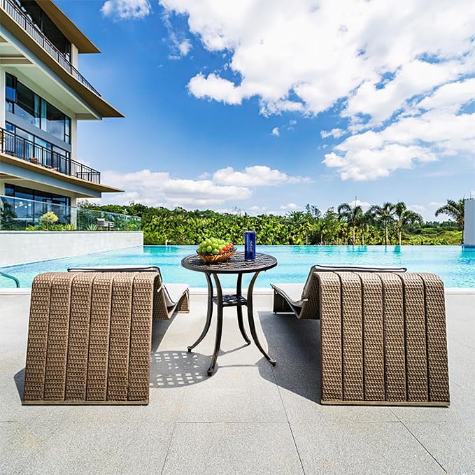 Outdoor 19" Pack of 2 Cast Aluminum Round Side Table for Patio, Backyard, Pool, Easy Maintenance and Weather Resistant (2, Bronze)
