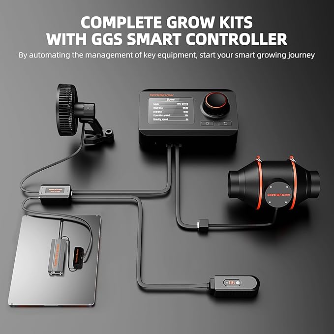 - Smart Environmental Controller: It integrates with various monitoring devices, including temp/humidity/light sensors, and is managed via the Spider Farmer app or manually operated. You can easily customize the light with 0%-100% dimming, grow cycles timer on/off schedule, adjust inline fan speed control over airflow, clip fan running speed & oscillating head angle. Ensures your plants thrive under optimal conditions.