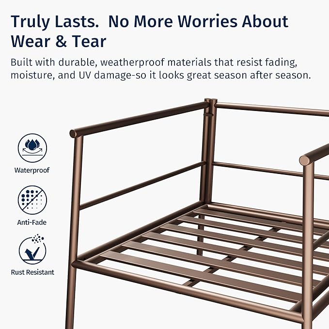 - SUPERIOR COMFORT WITH ROCK-SOLID STABILITY: Relax with confidenceāeach armchairās reinforced steel frame provides exceptional support, holding up to 350 lbs per chair without wobbling. Designed for lasting durability, its rust-resistant, weatherproof construction keeps it sturdy and reliable year-round