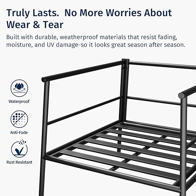 - SUPERIOR COMFORT WITH ROCK-SOLID STABILITY: Relax with confidenceāeach armchairās reinforced steel frame provides exceptional support, holding up to 350 lbs per chair without wobbling. Designed for lasting durability, its rust-resistant, weatherproof construction keeps it sturdy and reliable year-round