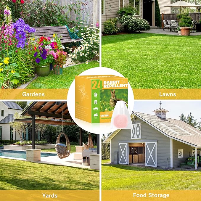 - Effective Rabbit & Deer Deterrent for Outdoor Use - Our 24-pack rabbit repellent balls are designed to protect your yard, garden, and landscape from pesky rabbits and deer. These natural balls offer an effective alternative to liquid fence deer and rabbit repellent sprays, with no mess or reapplication needed. Ideal for use around flowerbeds, vegetable patches, shrubs, or anywhere you need long-lasting protection. Repels through powerful scent barrierākeeping animals away without harming them