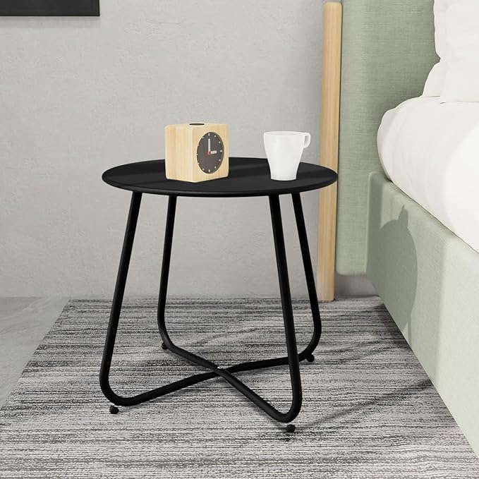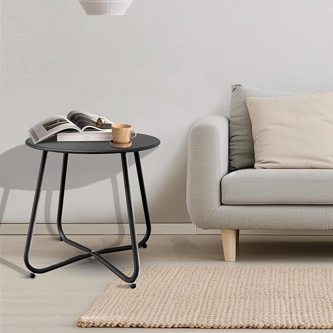 - Sturdiness & Flexibility: The design of round end table and X-shaped integral steel construction makes the patio side table sturdy and durable. Our metal end tables can hold up to 110 lbs. 4 iron feet whose height can be adjusted are at the bottom, which increases the stability of the table on uneven ground and prevents your floor from scratching.