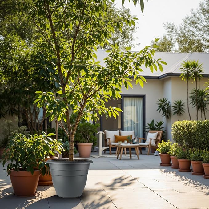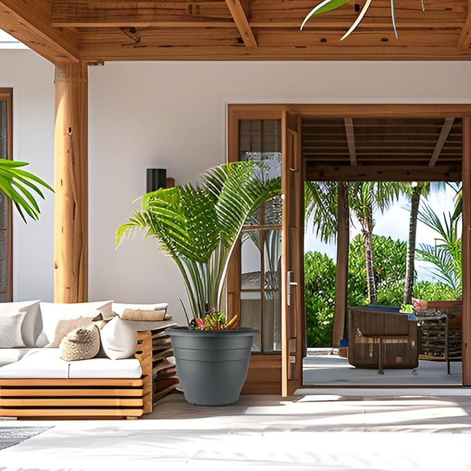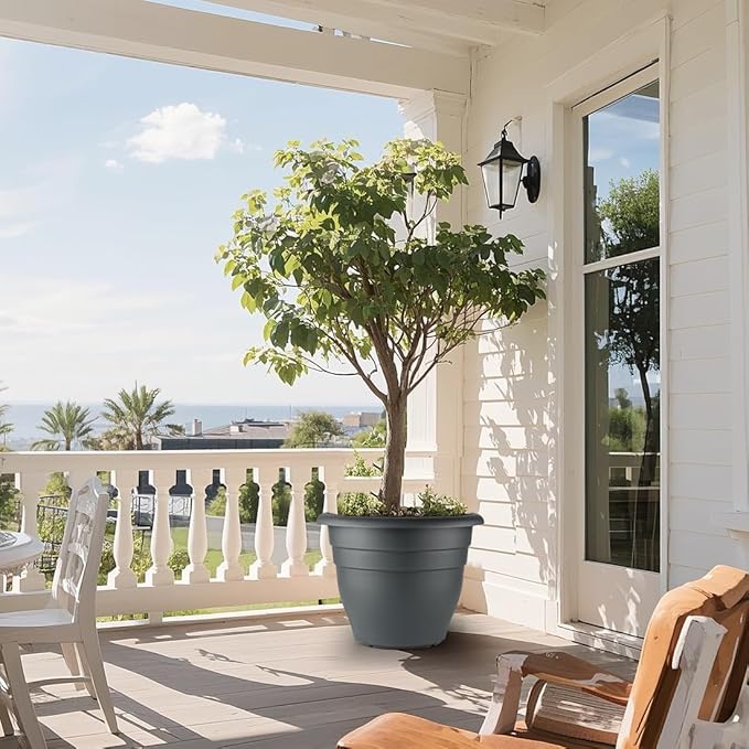 Large Plastic Pots for Plants, 16 Inch Planters for Outdoor Plants, Durable and Lightweight Flower Pots, Large Outdoor Planters(Pack of 3, Gray)