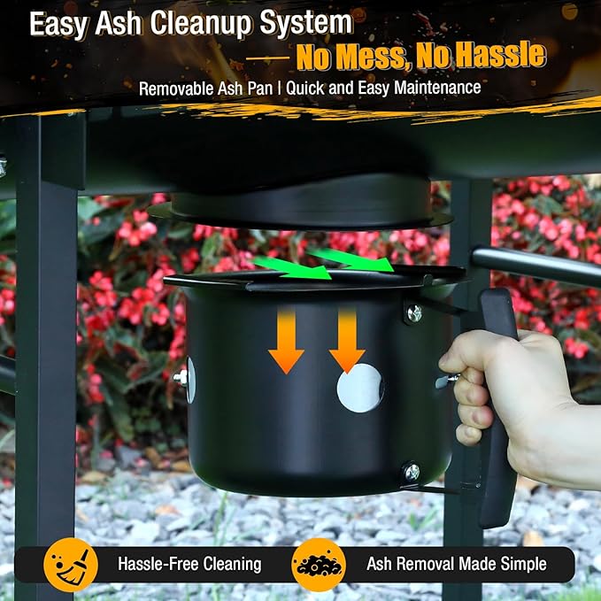 - Convenient Charcoal Refueling & Ash Management: The center-lift charcoal access grate lets you add coal without removing the whole rack - no interruptions while grilling. Combined with an easy-clean ash holder, this coal grill keeps your cookout flowing smoothly and cleaning hassle-free