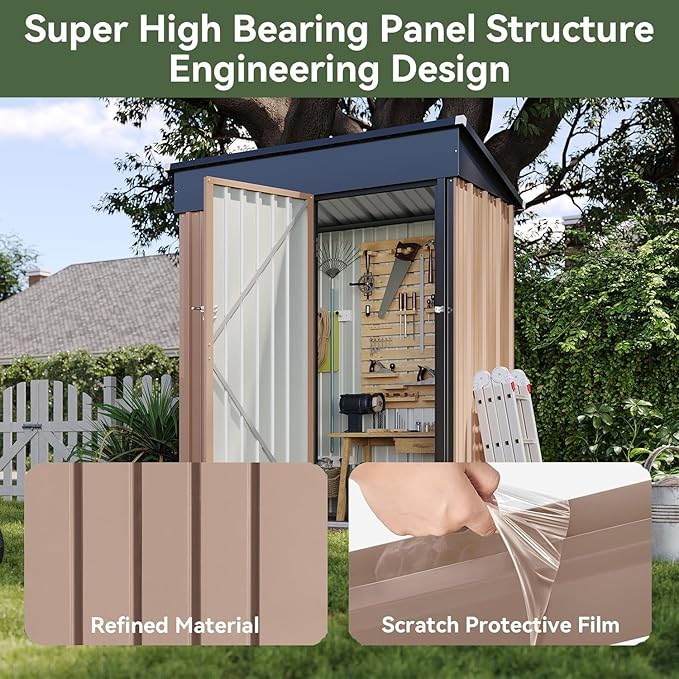 Aoxun 5x3 FT Shed Outdoor Waterproof Storage Shed Metal Garden Shed with Lockable Doors & Slooping Roof for Backyard, Patio, Poolside (Brown)