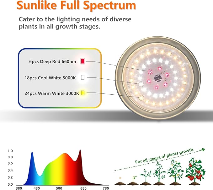 - Full Spectrum: Full spectrum with enhanced 660nm deep red,Featuring our signature warm white LED, the JMXULONG is Suit for growing plants, while bringing picturesque lighting to your living space.