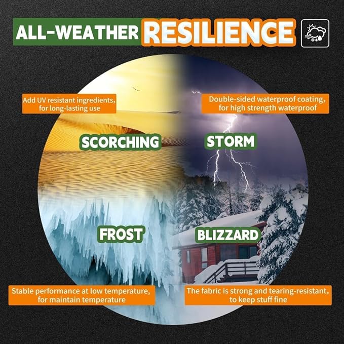 - 【UV RESISTANT TARP +WEATHER PROOF】 This tan tarps heavy duty waterproof can provide a UV protection in the sun, it has extra thickness and it fits for what you wanted it to do,Mother Nature can be unpredictable, but you can be prepared
