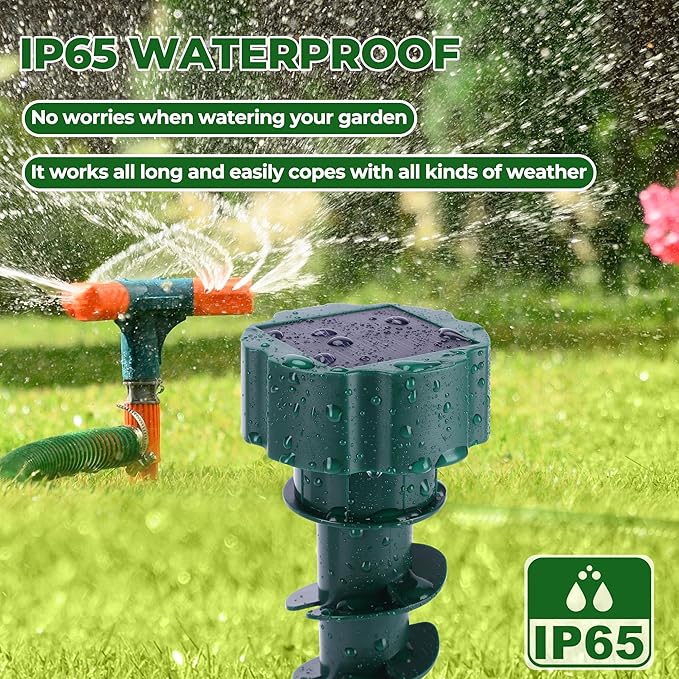 - Weather-Resistant & Long-Lasting – Built to Withstand the Elements: With an IP65 waterproof rating and high-durability ABS housing, these mole repellent stakes continue operating rain or shine. Designed for year-round outdoor use, they resist water, dust, and soil conditions to deliver lasting pest deterrence