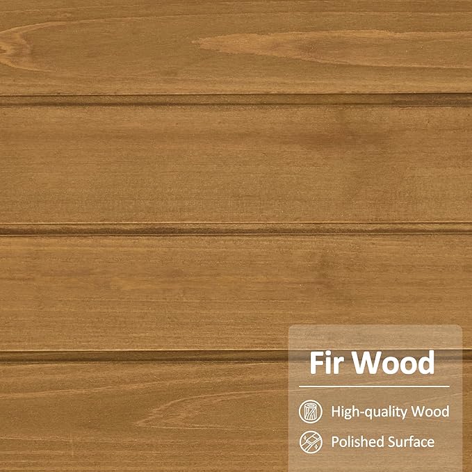 - Fir Solid Wood: The garden shed is made of pure fir wood, and the exterior has been polished to express a rustic style; Its natural color harmonizes with various outdoor environments, making it an addition to any garden or deck