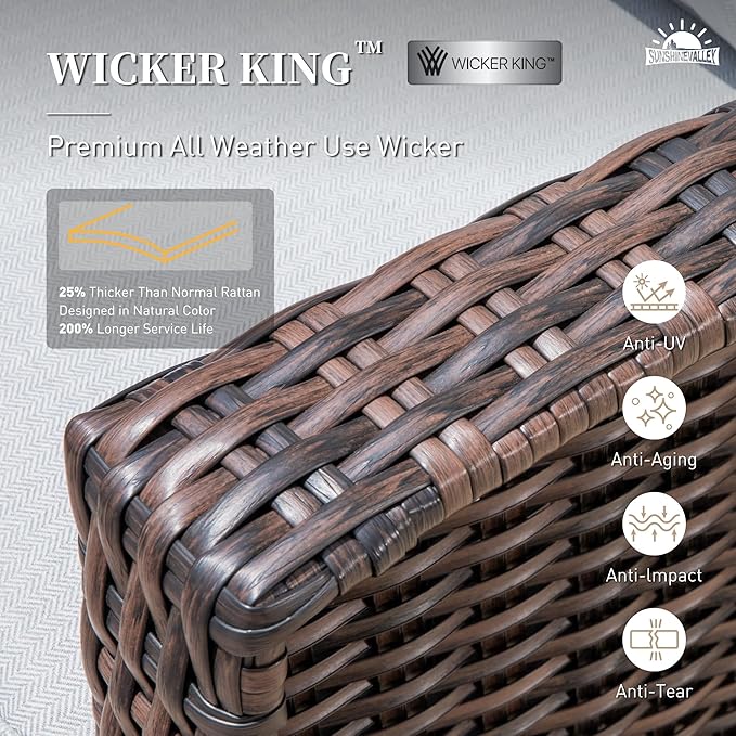 - WICKER KING RATTAN: The premium brown rattan has 100% UV protection and is reinforced on both rattan edges, which is 25% thicker than normal rattan and can prolong the service hours of the rattans. With this 100% handcrafted high quality rattan, this sofa couch set has great performance in all weather like rain, intense sun exposure, suit for year-round outdoor use