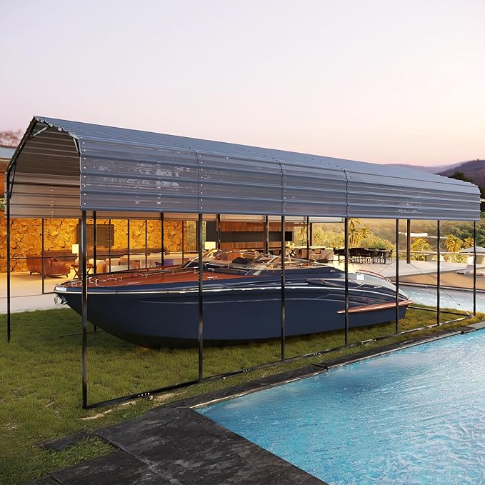 - Multifunctional: Measuring 14x30 feet with 420 square feet of space, this carport is suitable for various vehicles such as RVs, SUVs, trucks, and boats. It can also accommodate up to 150 people, making it perfect for outdoor events like parties and camping. It doubles as a storage shed or garden room for both residential and commercial use