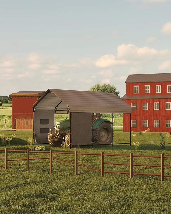 - Multi-Purpose Utility: More than just a shelter for your car, motorcycle, or ATV, this versatile structure adapts to your evolving outdoor needs. Its innovative design effortlessly converts into a garden shed—with sidewall fabric panels that let you create a secure space for gardening tools, outdoor equipment, or extra storage—all included in one smart package