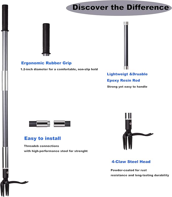 - Lightweight & Eco-Friendly Design:Crafted with a lightweight epoxy resin shaft, this weed picker tool eliminates the need for wood, reducing environmental impact without sacrificing strength. Built to handle heavy-duty tasks, it resists bending or breaking even under pressure. The ergonomic anti-slip grip at the top ensures comfortable control during long gardening sessions, making it ideal for tackling stubborn weeds effortlessly