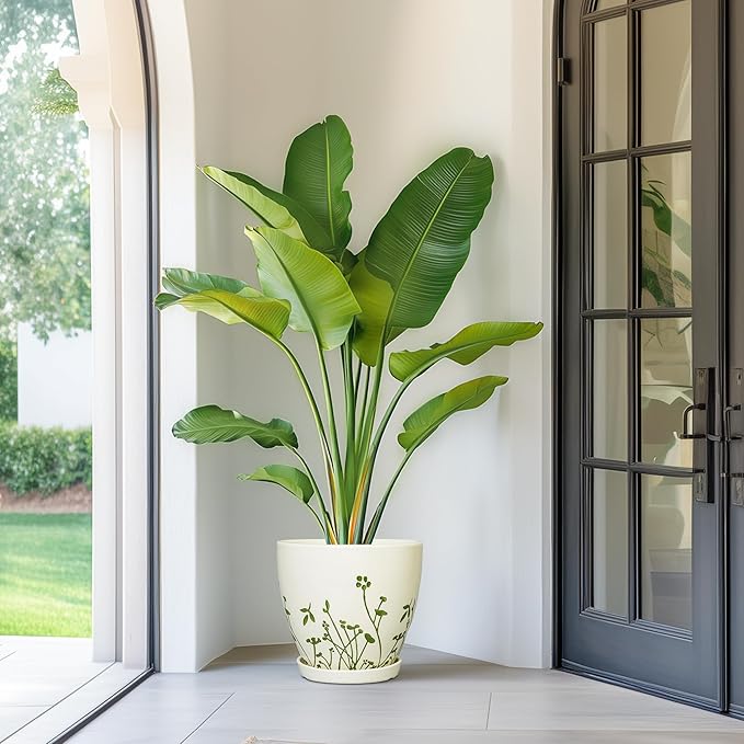 - Suitable for A Variety of Plants: This ceramic pots for plants ideal for indoor plants like olive tree, snake plant, money tree, zz plant, monstera, peace lily, palm, fiddle leaf fig, bird of paradise, pachira aquatica, and so on