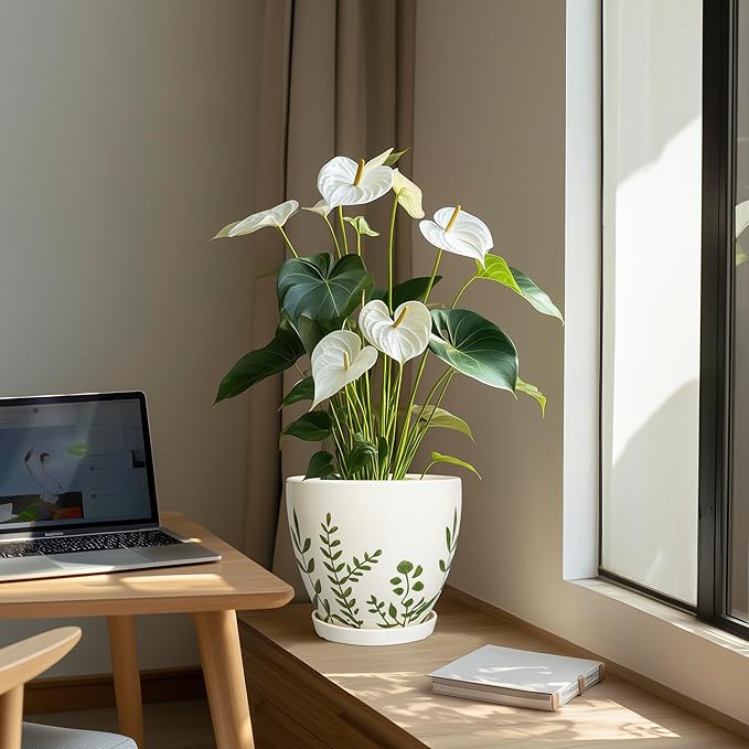 - Modern Design: With its sleek, glossy white finish, this ceramic planter adds a stylish touch to any space. Ideal for home, office, garden, patio decor, this ceramic flower pot elevates your indoor aesthetic
