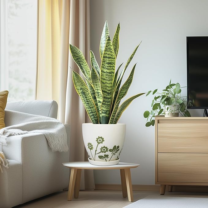 - Plant Pot with Drainage Hole and Saucer: There is a drainage hole at the bottom of the 8 inch plant pot, which maintains optimal soil moisture. The removable saucer catches excess water, keeping your surfaces clean