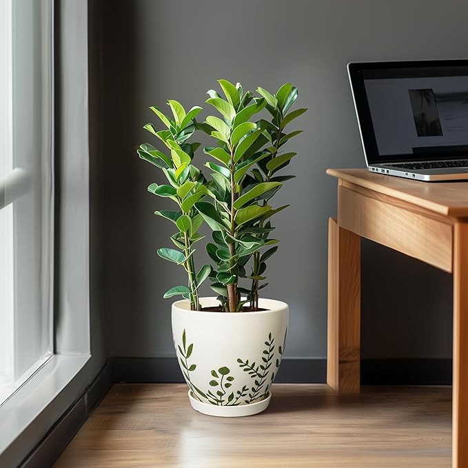 - Modern Design: With its sleek, glossy white finish, this ceramic planter adds a stylish touch to any space. Ideal for home, garden, patio, balcony, office, livingroom decor, this indoor plant pot elevates your indoor aesthetic
