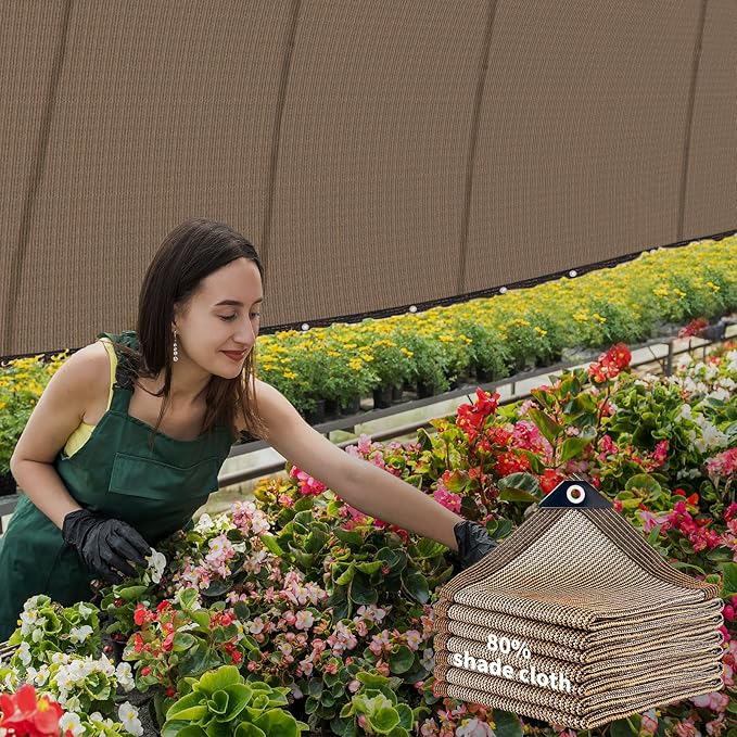 Shade Cloth,80% Sunblock Net with Metal Grommets and Reinforced Edges,Garden Sun Shade Netting,Used in Courtyards,Balconies,Carports,Greenhouse, Plants Growing,Chicken Coop Patios etc.16x16FT