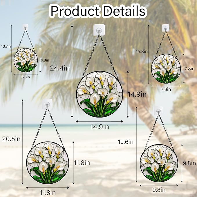 Stained Glass Window Hanging, White Calla Lily Suncatcher Diamond Glass Panel Hangings Flowers Sun Catchers Decor for Birthday for Women, Men, Wife, Aunt, and Mom 14.9x14.9 in