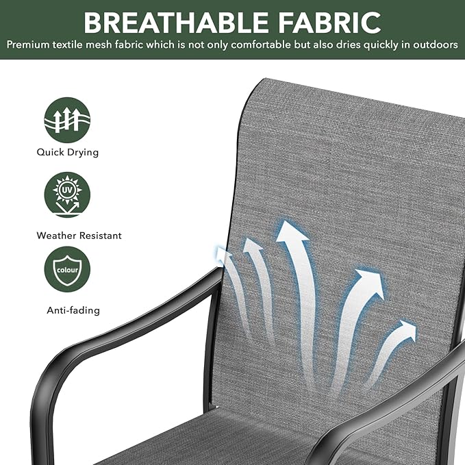 - COMFORT FEATURES: Each chair features 360-degree swivel motion and high-back design with plush cushions for enhanced comfort and relaxation