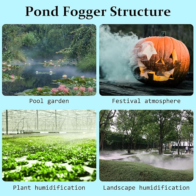 - 【versatile Applications】This mist maker is suitable for a wide range of uses, from festive decorations and stage atmospheres to pond, pool, or greenhouse humidification, you can also DIY the sonic mister into a humidifier by yourself