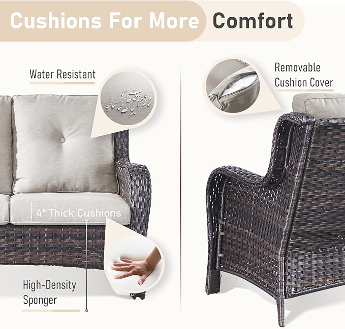 - 4" Soft Thickness Cushions: Patio furniture cushion is filled with high-density sponge and the cover is made of UV Resistant outdoor olefin fabric, which provides better comfortable seating experience. Removable zipper design, easy to replace and clean.