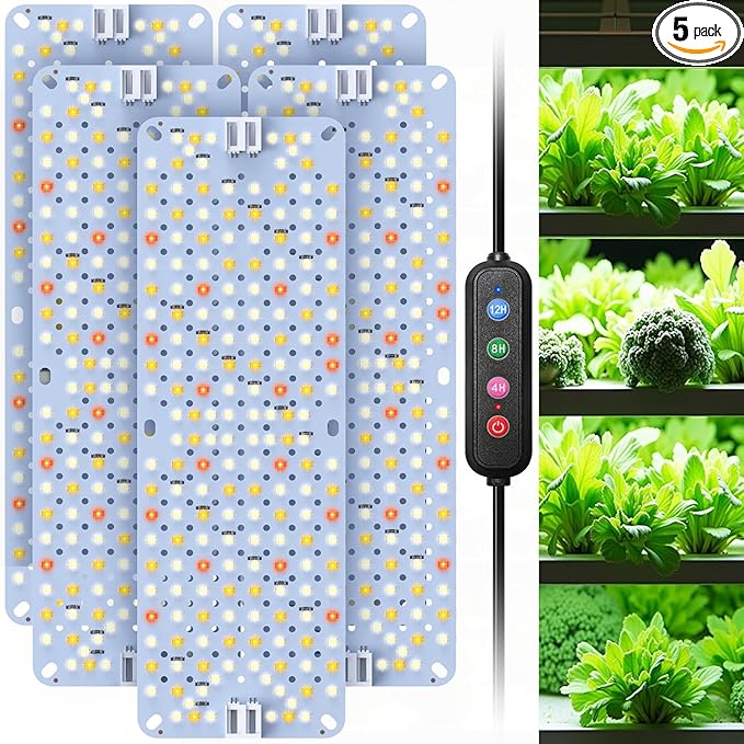 Full Spectrum Grow Lights,60W Plant Grow Lights for Indoor Plants with Daisy Chain Function, Sunlike Spectrum,960 LEDs and 4/8/12/16/20H Timer for Seed Starting(Pack5)