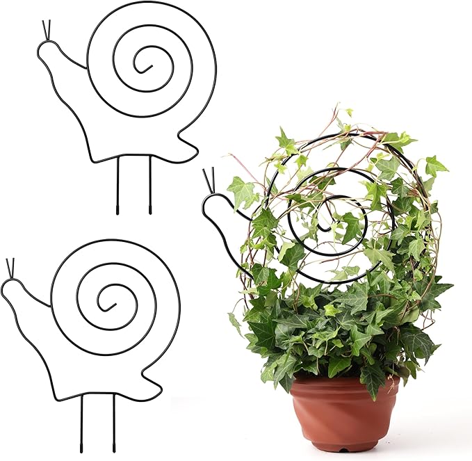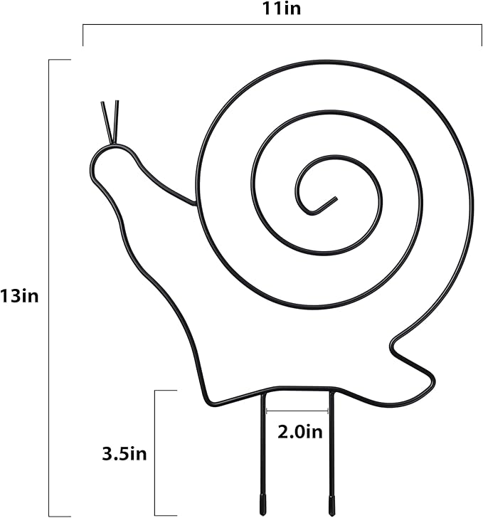 - Small Trellis:Includes 2 Pack of Snails-Shaped Plant Trellises, each measuring 13" high and 11" wide. The 4" ground stake inserts easily into soil, making it perfect for small planters or garden beds. A fun and functional way to support your vining plants while adding a playful touch to your indoor decor.
