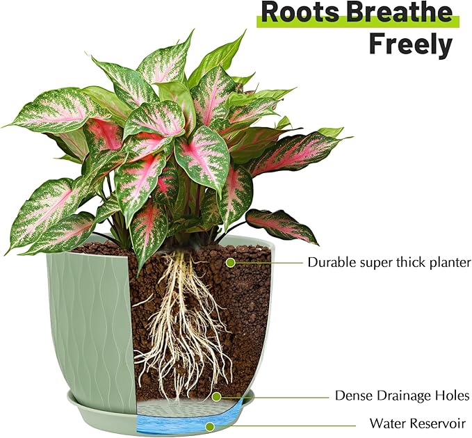 - Versatile Sizes for Every Plant: This set includes three pots in varying sizes (10+9+8+7.5+7 inch diameter), making them perfect for a wide range of plants like succulents, cacti, herbs, and more. Create a vibrant garden indoors or outdoors with ease.