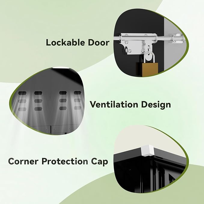- Lockable Door and Vents:The lockable door provides security,keeps your tools away from being stolen,and avoids small animals from entering accidently;Two Top Vents for Better Airflow,Keeping the Space Cool and Odor-Free