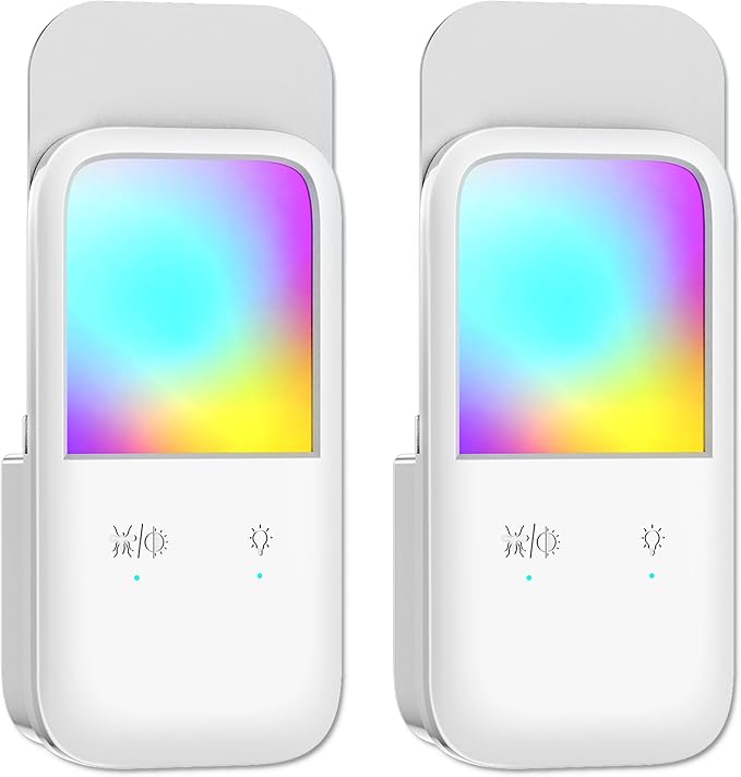 Plug-in Fly Trap NightLight - RGB Insect Catcher for Mosquitoes, Gnats, Fruit Flies, Indoor Insect Trap, Color-Changing Lamp for Home, Kitchen,Office (2 Devices with 10 Sticky Pads)