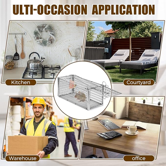 - Multifunctional Application: these animal traps are adaptable, implying a wider scope of application; Whether it is your home, garden, kitchen, garage, terrace, patio, warehouse, office, or other place infested with rats, these traps will do a good job; These traps will serve most environments, providing a versatile tool in dealing with different levels of infestation