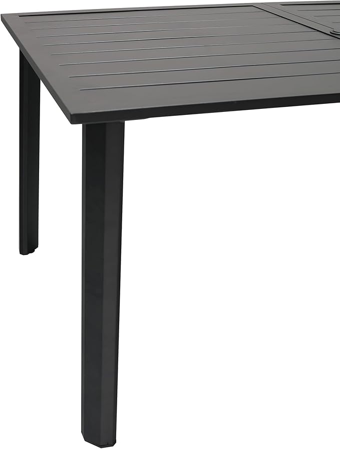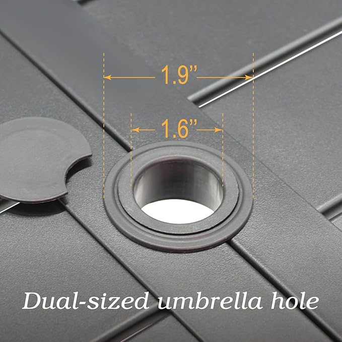 - PRACTICAL DESIGN: Slatted table top allows water drainage and features umbrella hole for optional shade coverage