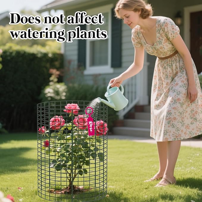 - High Quality Material: These plant protection cage are made of metal material, the surface is designed with vinyl coating, protected from wind and rain, waterproof and rustproof, sturdy and durable, not easy to be damaged, can be used for a long time. The fine mesh can effectively prevent rabbits, chickens, ducks and other small animals from getting close to the plants, providing a comfortable and safe growing space for flowers and plants.