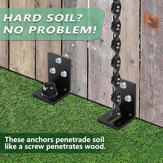 - HEAVY DUTY GROUND ANCHORS: Our ground anchors are made of high-quality metal and coated with black paint to minimize rust. The fully welded spiral design enhances durability and longevity, while the rounded edges provide better support in the soil.