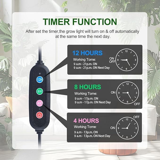 - Eye-Guard Sun Spectrum & Smart Dual Modes---Lab-engineered full-spectrum replicates natural sunlight cycles (3000K-6000K). Your plants thrive while your eyes stay strain-free.