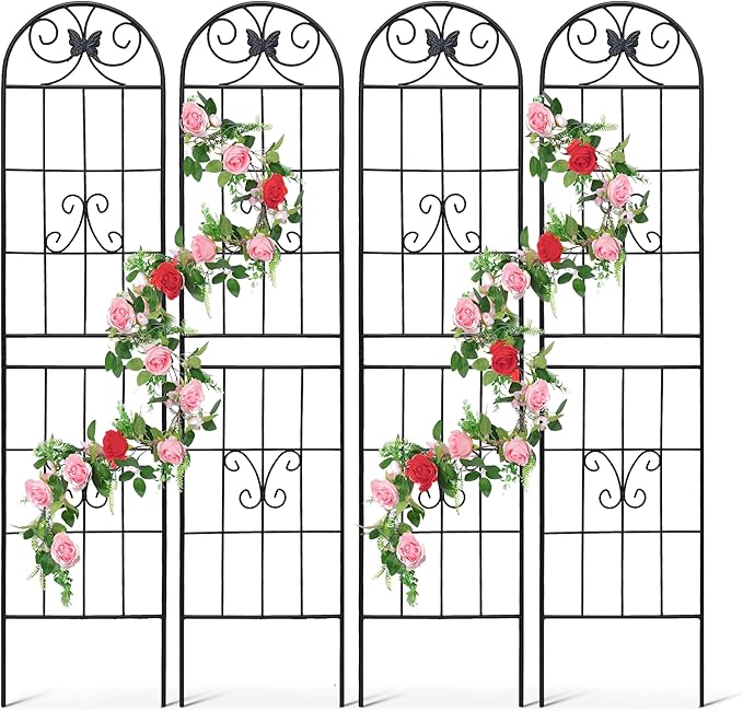 - Multi-purpose Metal Garden Trellis: This outdoor garden trellis is perfect for supporting all kinds of flowering trellis plants, wall-climbing vines, cucumber, grape,etc. It allows them to grow naturally up towards the top.