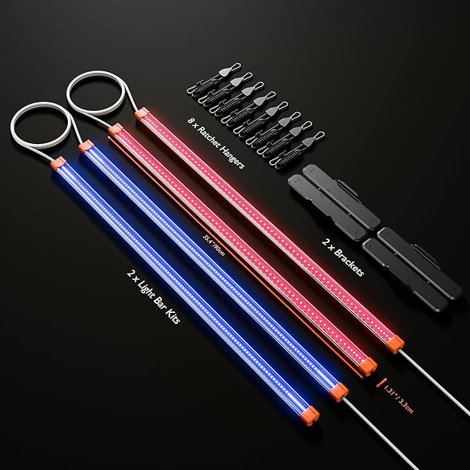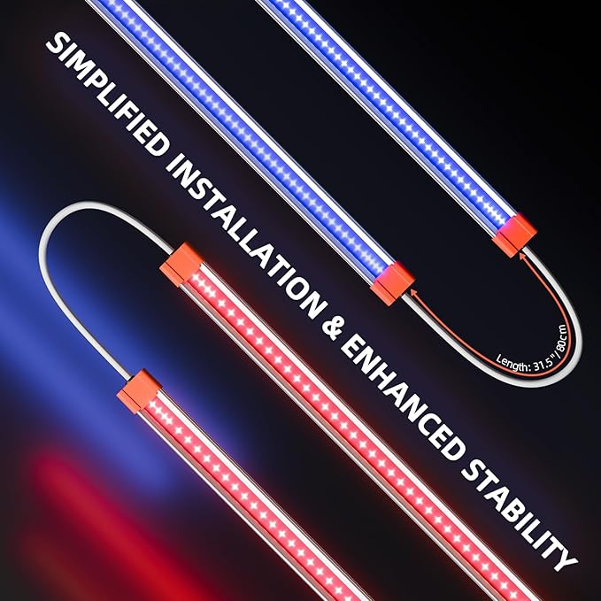 - 【POWERFUL PERFORMANCE】The UV60 & IR30 grow light bar measures 35.4 inches in length, catering perfectly to grow tent sizes of 2x4, 5x5. It can be used with main lights such as quantum board grow light and bar-style grow light setups and compatibled with GGS AC5/AC10 power kits, with easy and smart time control via the app. The fixed cable ensures better system reliability and stability by eliminating loose connections.And the included quick-mount brackets make installation easy while keeping the optimal light angle and performance.